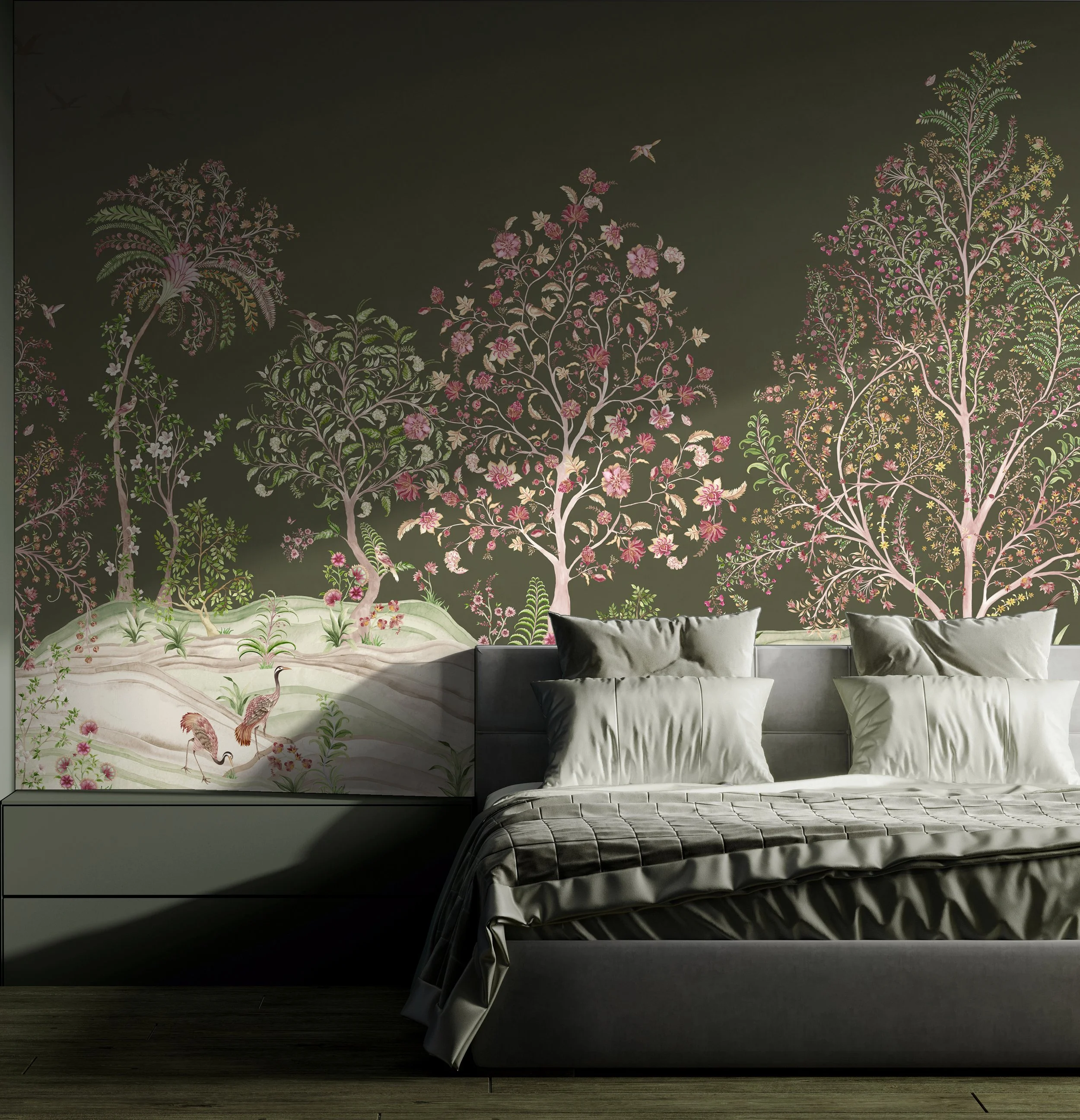 Painted in our sunlit Perth studio using the finest watercolour paints on 100% cotton cold pressed paper sourced from sustainably managed forests. This wallpaper was an absolute delight to create, Full to the brim with a rich array of hand painted, flowers, birds, butterflies and exotic blooms. We genuinely hope you cherish it as much as we do!