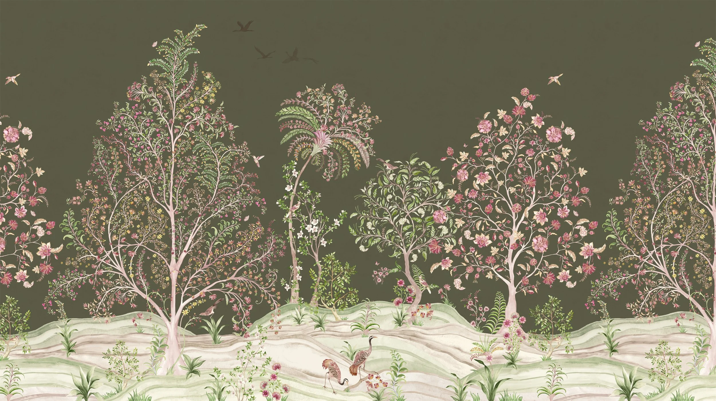 The artwork is based on a standard wall size of 280cm with a repeat coming seamlessly back in at 379cm. We know that no two walls are the same so we will customise to fit.